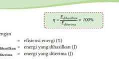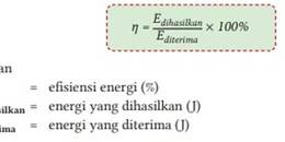 Rumus ini digunakan untuk menghitung persentase energi masukan yang berhasil diubah menjadi energi keluaran yang bermanfaat.